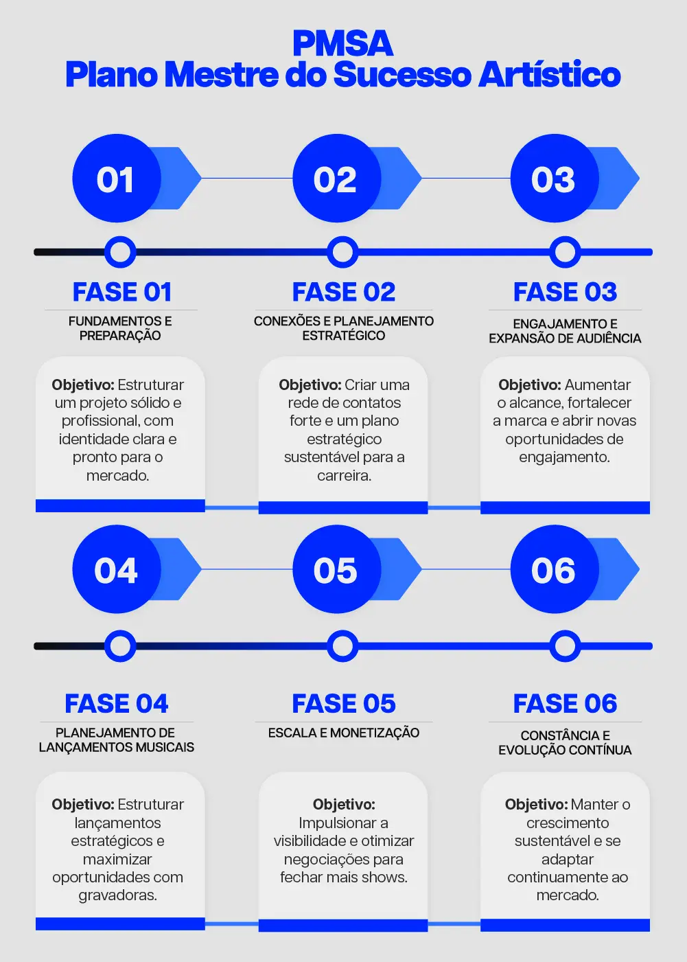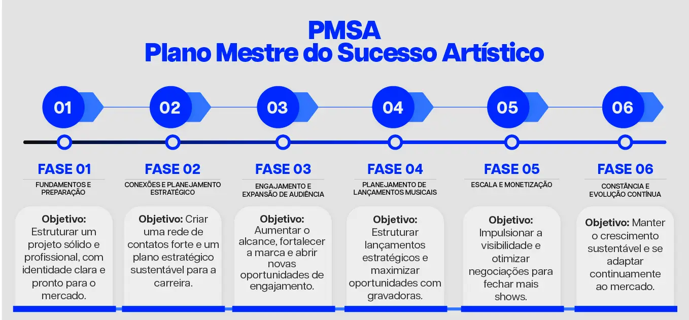 6 fases desenvolvidas para acelerar o seu crescimento e garantir que o seu projeto tenha uma agenda cheia de shows.